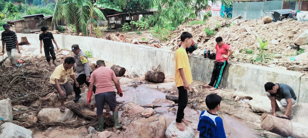 “Bhabinkamtibmas selalu hadir membantu warga binaannya, termasuk dalam kegiatan gotong royong membersihkan aliran Sungai Aek Doras dari kayu-kayu yang berserakan akibat banjir bandang. Ini merupakan bentuk kepedulian dan sinergi antara Polri dan masyarakat,” ujar AKP Martua Sinaga.