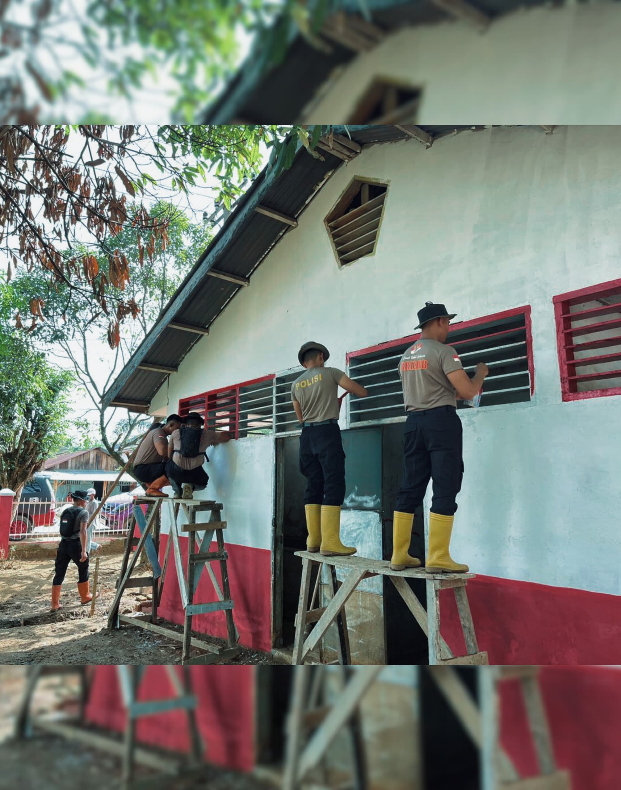 Menjelang kunjungan Kapolri ke wilayah hukum Polres Tapanuli Tengah, personel Satuan Brimob Polda Sumatera Utara dari Batalyon C melaksanakan kegiatan pembersihan dan renovasi fasilitas pendidikan, Jumat (13/2/2026).