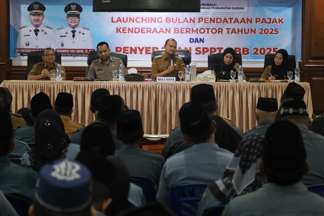 Wali Kota Tanjungbalai,Mahyaruddin Salim menghadiri sekaligus membuka acara launching pendataan pajak kenderaan bermotor tahun 2025 menyerahkan Daftar Himpunan Ketetapan Pajak (DHKP) dan Surat Pemberitahuan Pajak Terutang Pajak Bumi dan Bangunan Perdesaan dan Perkotaan (SPPT PBB-P2) Tahun 2025 kepada para camat dan lurah se-Kota Tanjungbalai.