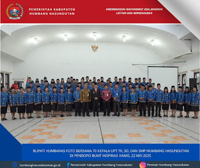 Bupati Oloan juga menekankan pentingnya peran kepala sekolah sebagai pemimpin pendidikan yang tidak hanya mengelola administrasi sekolah, tetapi juga mendorong peningkatan kualitas pembelajaran, sarana prasarana, serta pengembangan sumber daya manusia.