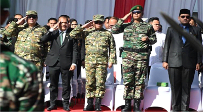 Panglima TNI mengingatkan pentingnya sinergi dan profesionalisme prajurit. Acara dimeriahkan demonstrasi TNI, defile pasukan berkuda, marching band, alutsista, dan Pesta Rakyat. (Freddy)