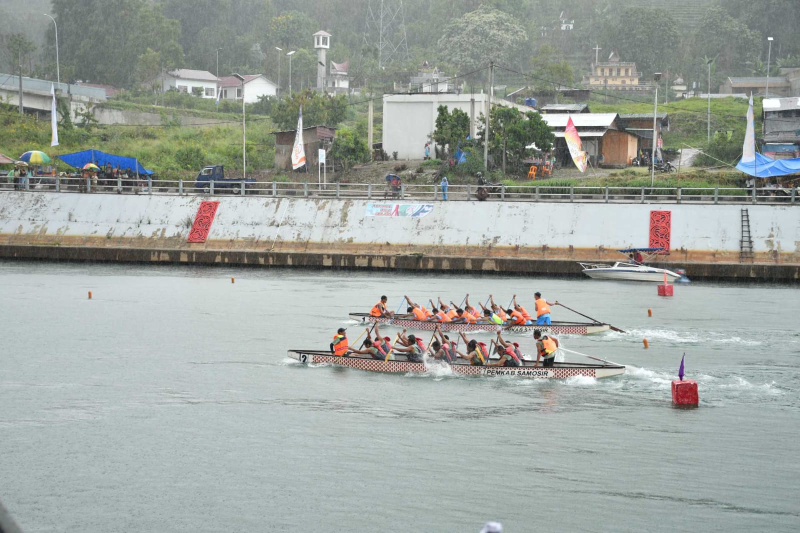 Bupati Samosir Vandiko T. Gultom secara resmi melepas bendera start perlombaan yang diikuti 22 tim dayung dari berbagai daerah di sekitar Danau Toba. Setiap tim  lintasan sejauh 500 meter di bawah ikon kebanggaan masyarakat Samosir tersebut.