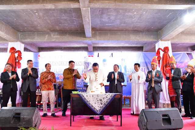 Samosir,busernusantarasorottv.com-Bupati Samosir Vandiko T. Gultom bersama Uskup Agung Medan Kornelius Sipayung meneken prasasti tanda Peresmian dan Pemberkatan Gereja Katolik Stasi Kristus Raja Paroki Santo Antonio Maria Claret Tomok, 31/08.