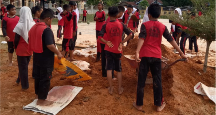 Siswa SDN 011 Kep. Bangko Bakti Gotong Royong Timbun Halaman Sekolah yang Terendam Banjir Pendidikan|December 17, 2025by admin Rohil,busernusantarasorottv.com-Siswa-siswi SD Negeri 011 Kepenghuluan Bangko Bakti, Kabupaten Rokan Hilir (Rohil), menunjukkan