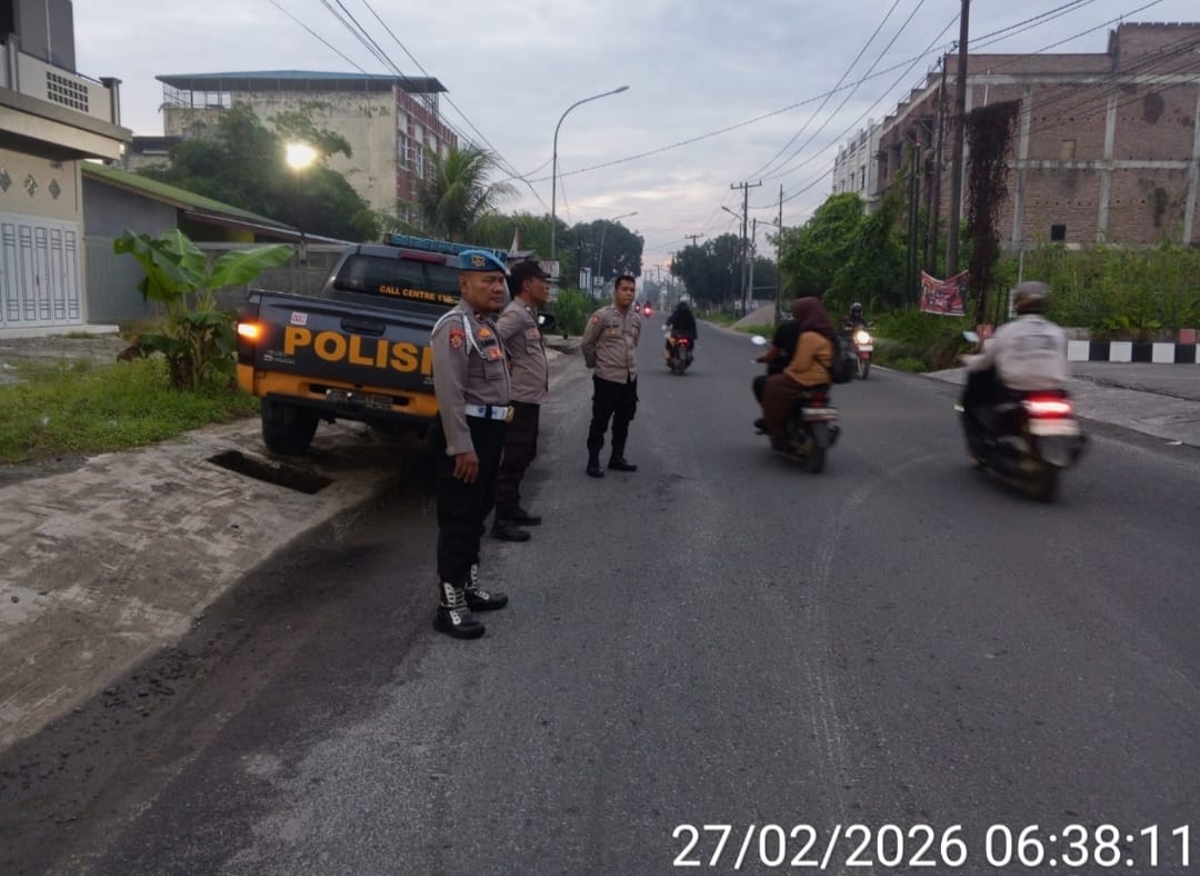 Polresta Deli Serdang bersama seluruh Polsek jajaran kembali melaksanakan kegiatan Patroli Menyapa Subuh selama Bulan Suci Ramadhan 1447 H/2026 M di wilayah hukum Polresta Deli Serdang, Jumat (27/02/2026).