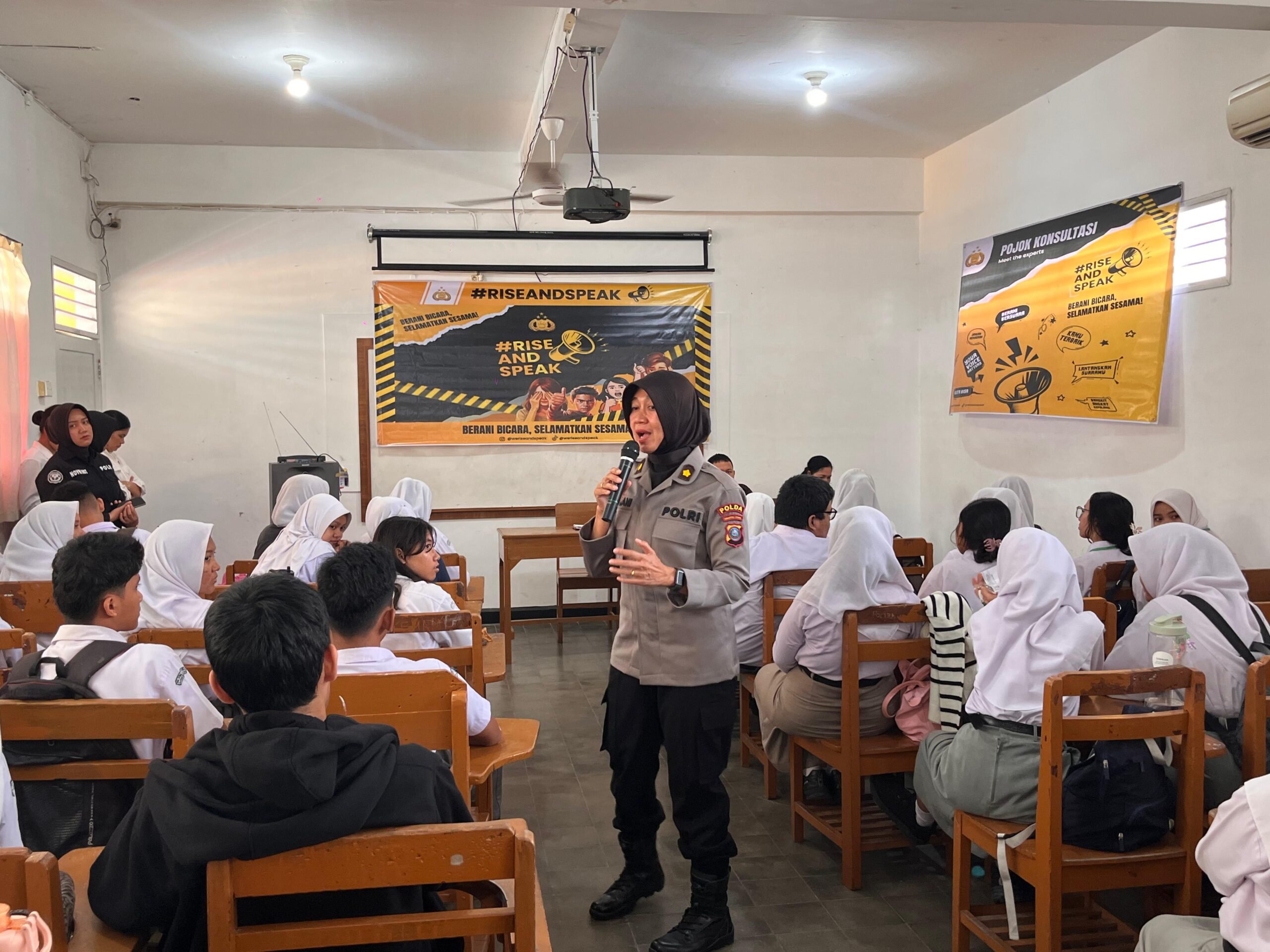 Dialog interaktif dipandu oleh para Polwan Ditreskrimum, di antaranya Kompol Haryani, S.Sos., M.AP., AKP Iriani, S.H., M.H., serta AKP Sitti T.H. Halawa, S.H., M.H., yang menyampaikan kampanye Rise and Speak.