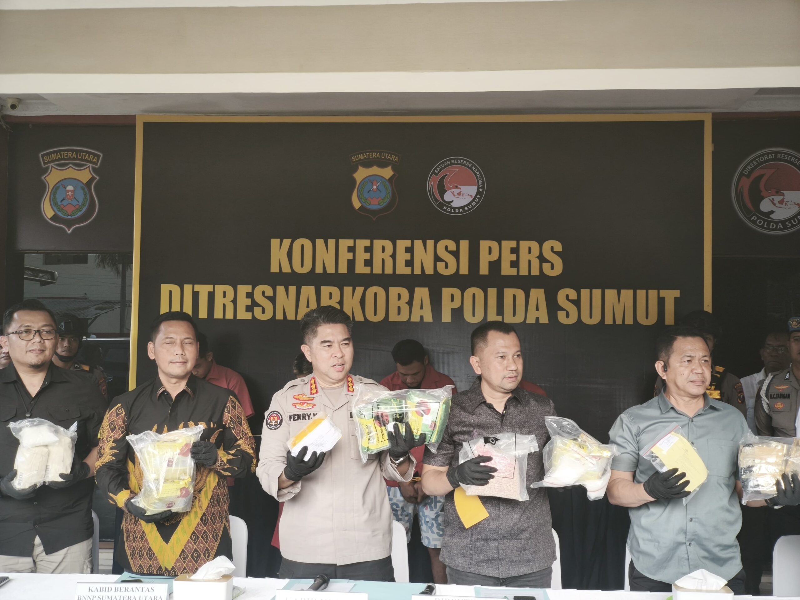 “Hasil dari kerja sama antara Direktorat Narkoba dan dua Polres di atas, dari Januari hingga Oktober, kita berhasil mengungkap sebanyak 571 kasus dengan 649 orang tersangka,” ujar Kombes Ferry, Selasa (7/10/2025) di Polda Sumut.