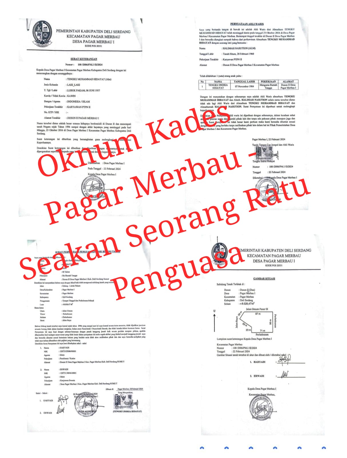 Informasi terbaru yang didapat oleh awak media, adanya Surat Keterangan tanah yang diduga dibuat oleh Kepala Desa Pagar Merbau I “NA” dengan nomor surat 100/2006/PM.I/II/2024 tertanggal 22 februari 2024 yang isinya terkait lahan dari rumah yang akan dijadikan situs cagar budaya.