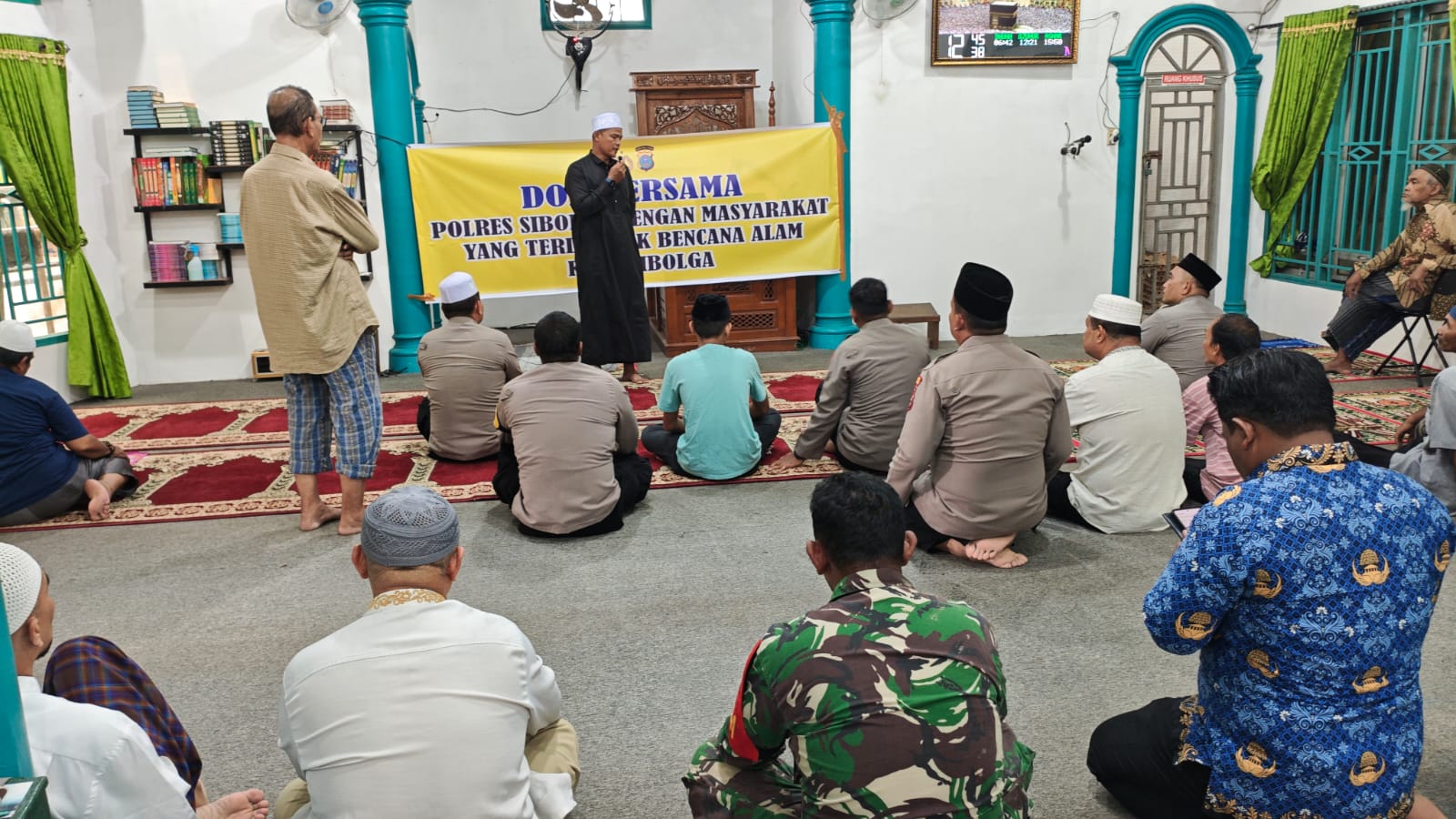 Dalam rangka mendoakan para korban serta memberikan dukungan kemanusiaan kepada masyarakat terdampak bencana alam tanah longsor dan banjir, Polres Sibolga melaksanakan kegiatan *Doa Bersama/Sholat Ghoib dan Pemberian Bantuan kepada Korban Bencana Alam*. Kegiatan tersebut dilaksanakan pada Rabu, 17 Desember 2025, mulai pukul 12.30 WIB hingga selesai, bertempat di Posko Pengungsian Masjid Budi Sehati.