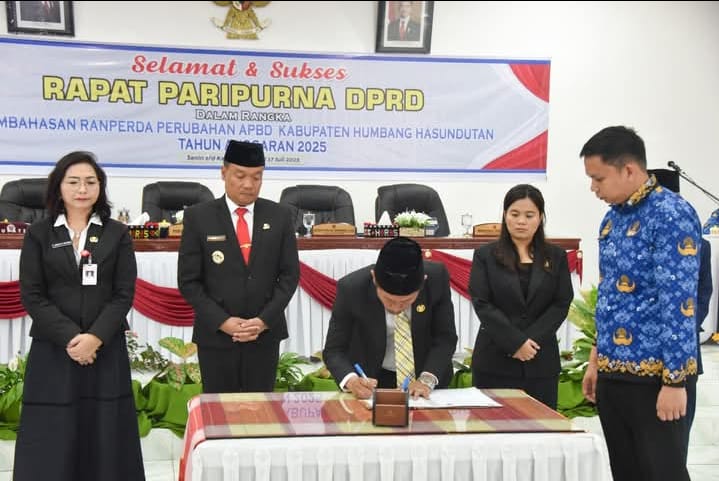 Doloksanggul,busernusantarasorottv.com- 17 Juli 2025 Dewan Perwakilan Rakyat Daerah (DPRD) Kabupaten Humbang Hasundutan secara resmi menyetujui dan mengesahkan Rancangan Peraturan Daerah (Ranperda) tentang Perubahan Anggaran Pendapatan dan Belanja Daerah (P-APBD) Tahun Anggaran 2025 menjadi Peraturan Daerah (Perda), dalam rapat paripurna yang digelar Kamis (17/7) di Gedung DPRD Humbahas, Doloksanggul.