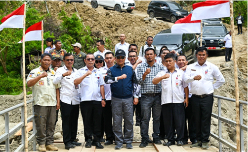 Mobil roda empat untuk pertama kalinya berhasil melintasi jalan bukaan baru dari Desa Sampetua menuju desa tersebut. Rabu (21/1/2026), Bupati Humbahas Dr. Oloan Paniaran Nababan, SH, MH bersama anggota DPRD, Sekda, dan rombongan meninjau langsung kondisi jalan dengan penuh kehati-hatian karena medan masih labil.