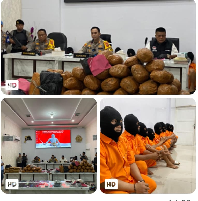 Adapun barang bukti yang berhasil diamankan meliputi narkotika jenis sabu seberat 9,01 gram dan ganja seberat 97.845,80 gram. Selain itu, turut disita sejumlah barang bukti pendukung berupa satu unit mobil Avanza warna hitam, tiga unit sepeda motor, sembilan unit handphone, delapan alat hisap sabu (bong), serta uang tunai sebesar Rp2.355.000.