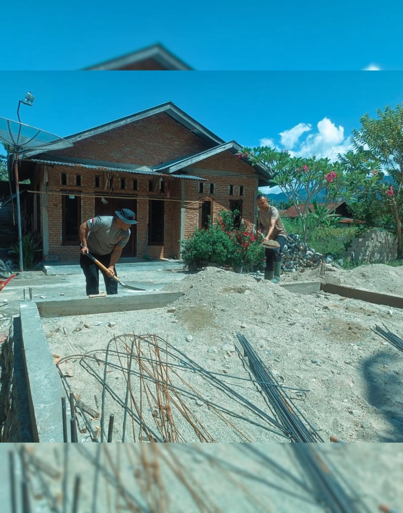 Dipimpin oleh Danton I Kompi 1 Batalyon C, IPTU Roy Sandri Pohan, S.H., personel Brimob melaksanakan pemasangan besi cor pondasi serta pemadatan timbunan tanah lantai pada pembangunan rumah swadaya hunian sementara ke-12, ke-13, dan ke-14. Setiap tahapan pekerjaan dilakukan dengan penuh ketelitian untuk memastikan kekuatan dan keamanan bangunan.