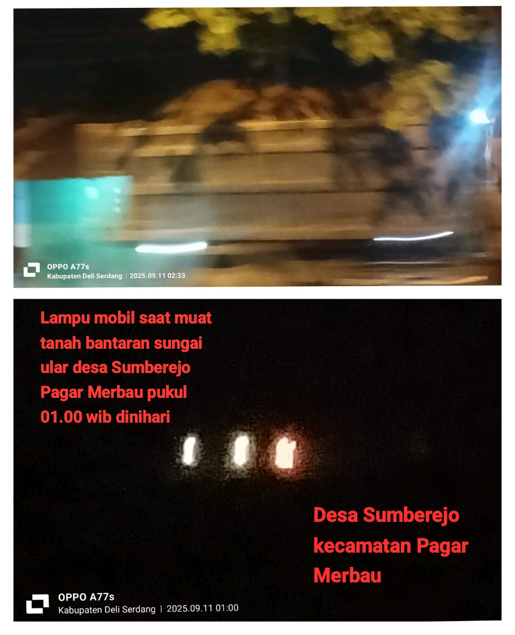 Pengusaha galian golongan C di wilayah BWS Sumatera II tepatnya di bantaran sungai ular desa Sumberejo kecamatan Pagar Merbau tidak mengindahkan instruksi aparat penegak hukum Polda Sumatera Utara Polresta Deli Serdang Polsek Pagar Merbau Kamis (11-09-2025) pukul 02.35 WIB dinihari tentang larangan galian C ilegal tanah Bantaran sungai ular tanpa izin pemerintah ataupun instansi terkait.