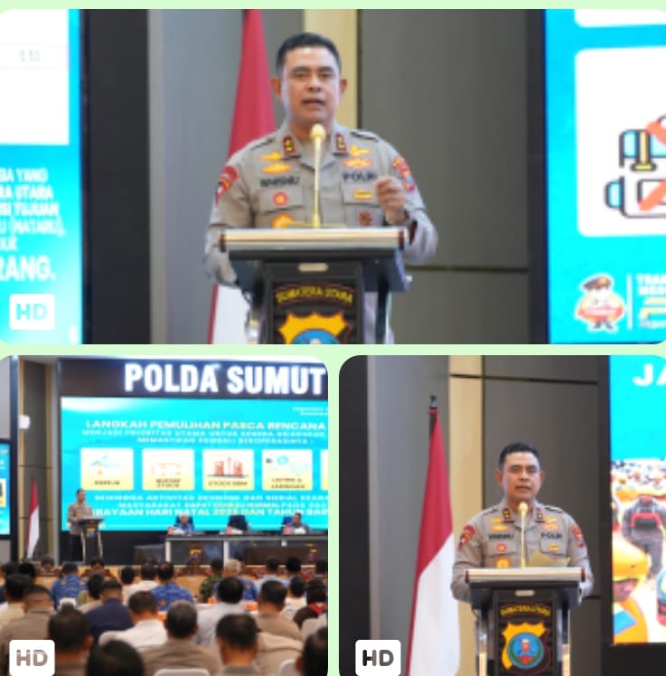 Hal tersebut disampaikan Kapolda Sumut, Irjen Pol Whisnu Hermawan Februanto, saat memimpin Rapat Koordinasi Lintas Sektoral Operasi Lilin Toba 2025 di Aula Tribrata Polda Sumut, Rabu (17/12/2025).