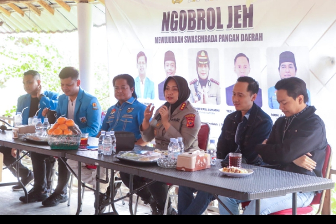 Cirebon – Buser Nusantara Sorot TV – Kapolresta Cirebon KOMBESPOL SUMARNI, S.I.K., S.H., M.H., menjadi narasumber dalam kegiatan Diskusi Ketahanan Pangan Bersama KNPI bertempat di RM Bageur Tengkleng termasuk Jl. Ir. Soekarno Ds. Sampiran Kec. Talun Kab. Cirebon, Rabu (28/5/2025).