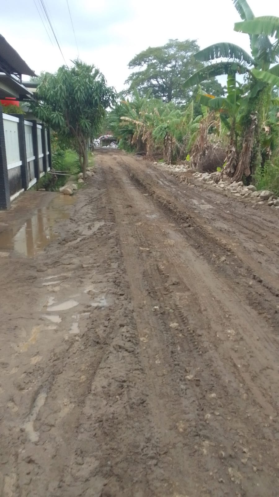 Apalagi di saat penghujan jalan yang dilalui warga lebih parah lagi yang dikhawatirkan adanya kecelakaan tunggal akibat licinnya jalan atau rusaknya kendaraan yang dipakainya.