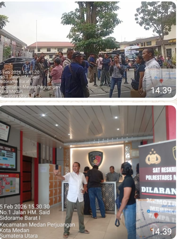 Keluarga korban pencurian yang mendadak disulap Polrestabes Medan menjadi tersangka atas laporan dari keluarga pelaku pencurian mendadak histeris dan teriak teriak meminta perlindungan kepada Prabowo Subianto, Kapolri dan Komisi III DPR RI dan Gubernur Sumut saat berada di gedung Satreskrim Polrestabes Medan, pada Kamis, 5 Februari 2026 sore.