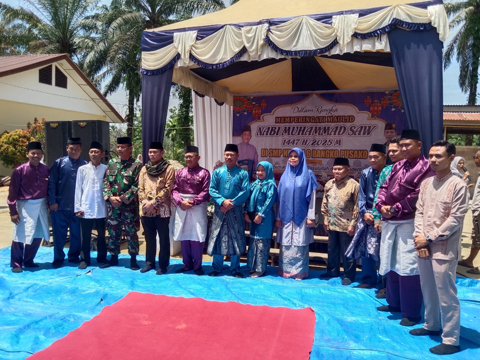 Rokan Hilir,busernusantarasorottv.com– SMP Negeri 6 Satu Atap Kepenghuluan Bangko Sempurna, Kabupaten Rokan Hilir, menggelar peringatan Maulid Nabi Besar Muhammad SAW di halaman sekolah, Sabtu (tanggal menyesuaikan). Kegiatan berlangsung khidmat dengan dihadiri para tokoh masyarakat, siswa-siswi, serta undangan.
