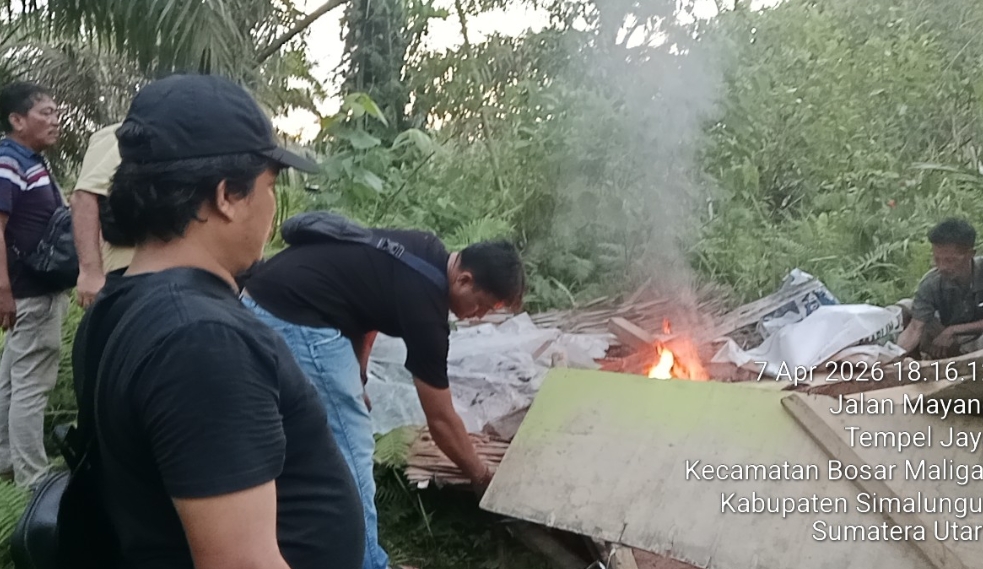 Perang terhadap narkoba bukan sekadar slogan bagi Polsek Bosar Maligas Polres Simalungun Polda Sumatera Utara. Buktinya, tanpa kompromi dan tanpa negosiasi, jajaran Polsek Bosar Maligas langsung menggerebek, merubuhkan, dan membakar rata sebuah gubuk yang diduga dijadikan lapak penyalahgunaan narkotika di perladangan milik Bapak Samadi, Huta II Penggalangan, Nagori Boluk, Kecamatan Bosar Maligas, Kabupaten Simalungun, pada Selasa, 07 April 2026, sekira pukul 18.00 WIB hingga tuntas.