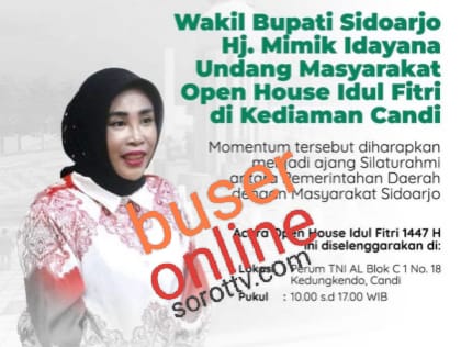 busernusantarasorottv.com : Mimik Idayana mengundang masyarakat untuk menghadiri kegiatan Open House Idul Fitri 1447 Hijriah yang akan digelar di kediamannya di kawasan Candi, Sidoarjo. (20/03/2026).