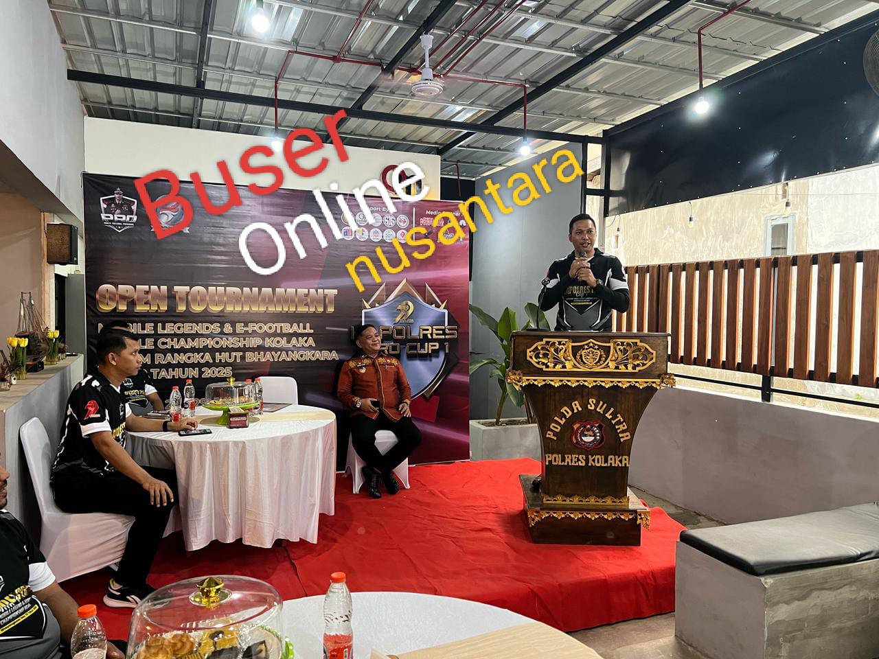 Turnament tersebut dibuka secara langsung oleh Kapolres Kolaka AKBP Yudha Widyatama Nugraha, Sik, MH. CPM dihadiri Oleh Bupati Kolaka yang diwakili oleh Plt. Kepala Dinas Pemuda dan Olahraga Agus S.ip, M.T, Ketua Komisi III DPRD Kab. Kolaka Israfil Sanusi Caco, Wakapolres Kolaka Kompol Mochammad Salman SH, SIK,MH. Camat Kolaka Ritzky Mario, S.STP, M.Si., Kasat Intelkam Polres Kolaka IPTU Muh. Yusran S.IP, M.M., Ketua HIPMI Kolaka M. Yunus Wahid S.Kom.,Ketua Harian Esport Kolaka Fauzan Hasbi.,Ketua BEM Fakultas USN Kolaka, Ketua Organisasi Kemahasiswaan Kolaka, Para Peserta sebanyak 57 (E-Football) dan peserta mobile legend sebanyak 21 tim