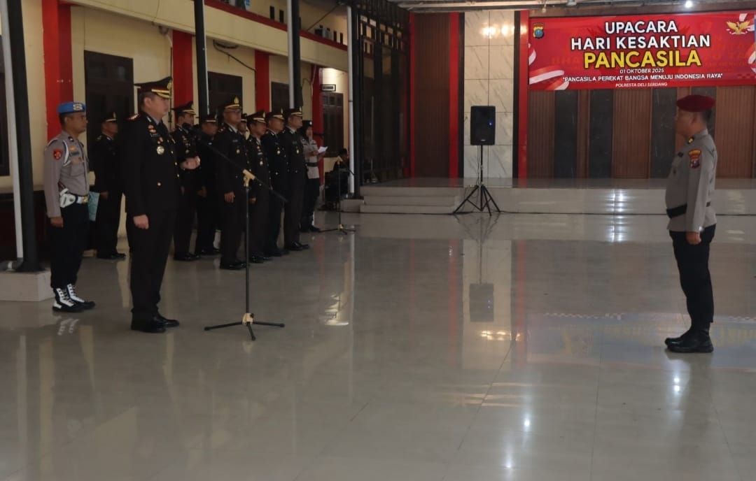 Upacara dipimpin langsung oleh Kapolresta Deli Serdang kombes Pol Hendria Lesmana, SIK, M. Si, Kapolresta menekankan pentingnya memperkuat nilai-nilai Pancasila sebagai pedoman hidup berbangsa dan bernegara, serta menolak segala bentuk paham yang dapat mengganggu persatuan dan kesatuan bangsa.