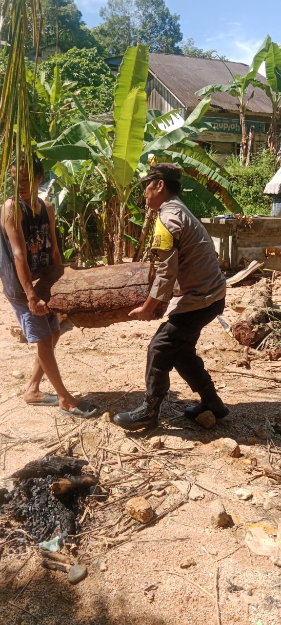 Pasca Banjir Bandang Bhabinkamtibmas dan Warga Bergotong Royong Bersihkan Material Kayu
