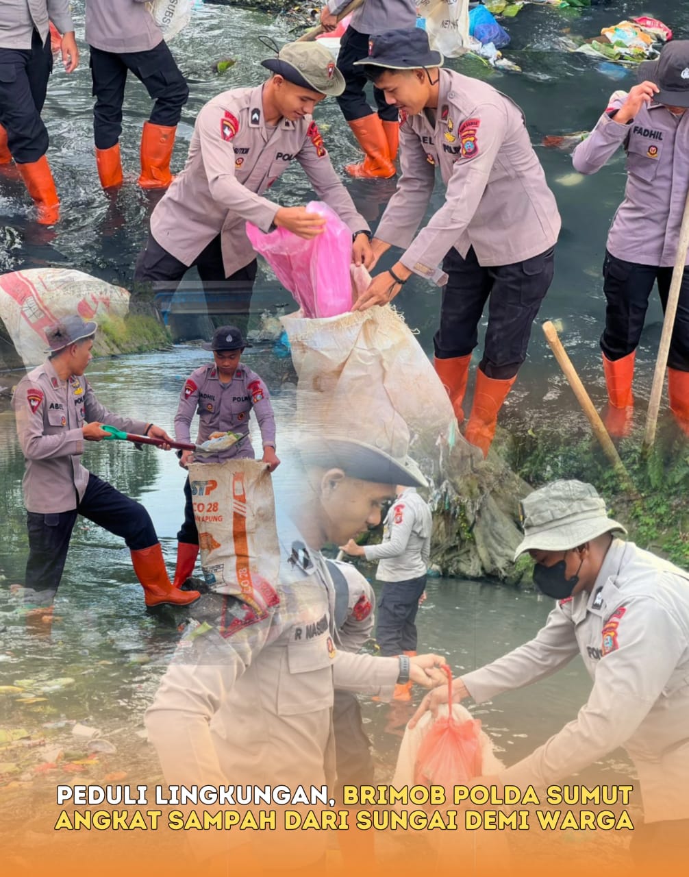 Peduli Lingkungan, Brimob Polda Sumut Angkat Sampah dari Sungai Demi Warga
