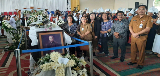 Turut hadir sejumlah pejabat Pemkab Humbahas, para Pastor, Suster, dan umat Katolik. Uskup Agung Medan, Mgr. Kornelius Sipayung, OFM.Cap., menyampaikan terima kasih atas perhatian Pemkab Humbahas. Almarhum wafat di usia 91 tahun dan dimakamkan di Purba Hinalang. (Freddy)