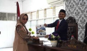 Tanjungbalai,busernusantarasorottv.com-Wali Kota Tanjungbalai, Mahyaruddin Salim bersama Ketua DPRD Tengku Eswin menandatangani naskah hibah tanah kepada Balai POM dan BNNK Tanjungbalai yang dilaksanakan pada rapat paripurna DPRD Kota Tanjungbalai bertempat di aula Kantor DPRD setempat, Rabu sore (25/6/2025)