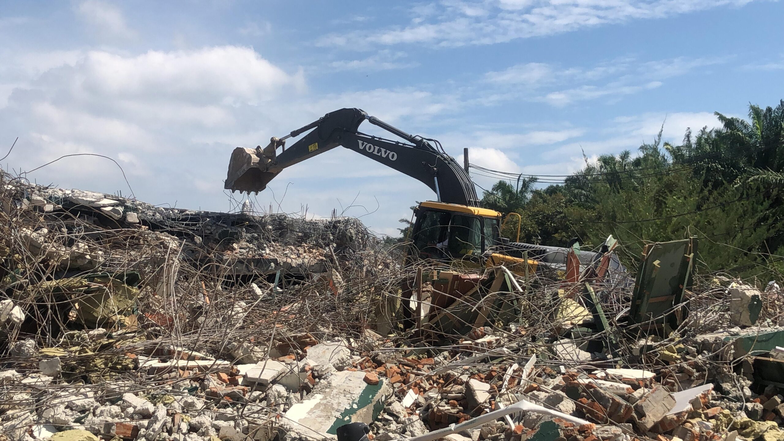Dua unit alat berat digunakan untuk meruntuhkan pagar tembok keliling, mess karyawan, serta sebagian ruang karaoke. Hingga malam hari, sebagian besar bangunan utama berhasil dirubuhkan, meski sisanya ditunda akibat penolakan massa dan akan dilanjutkan pada esok hari.