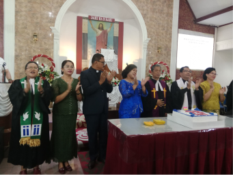 Turut hadir dalam perayaan tersebut, Ephorus HKI Pdt. Firman sibarani, MTh , Sekretaris Jenderal HKI Pdt. Hotman Hutasoit, M.Th, Kepala Departemen Koinonia