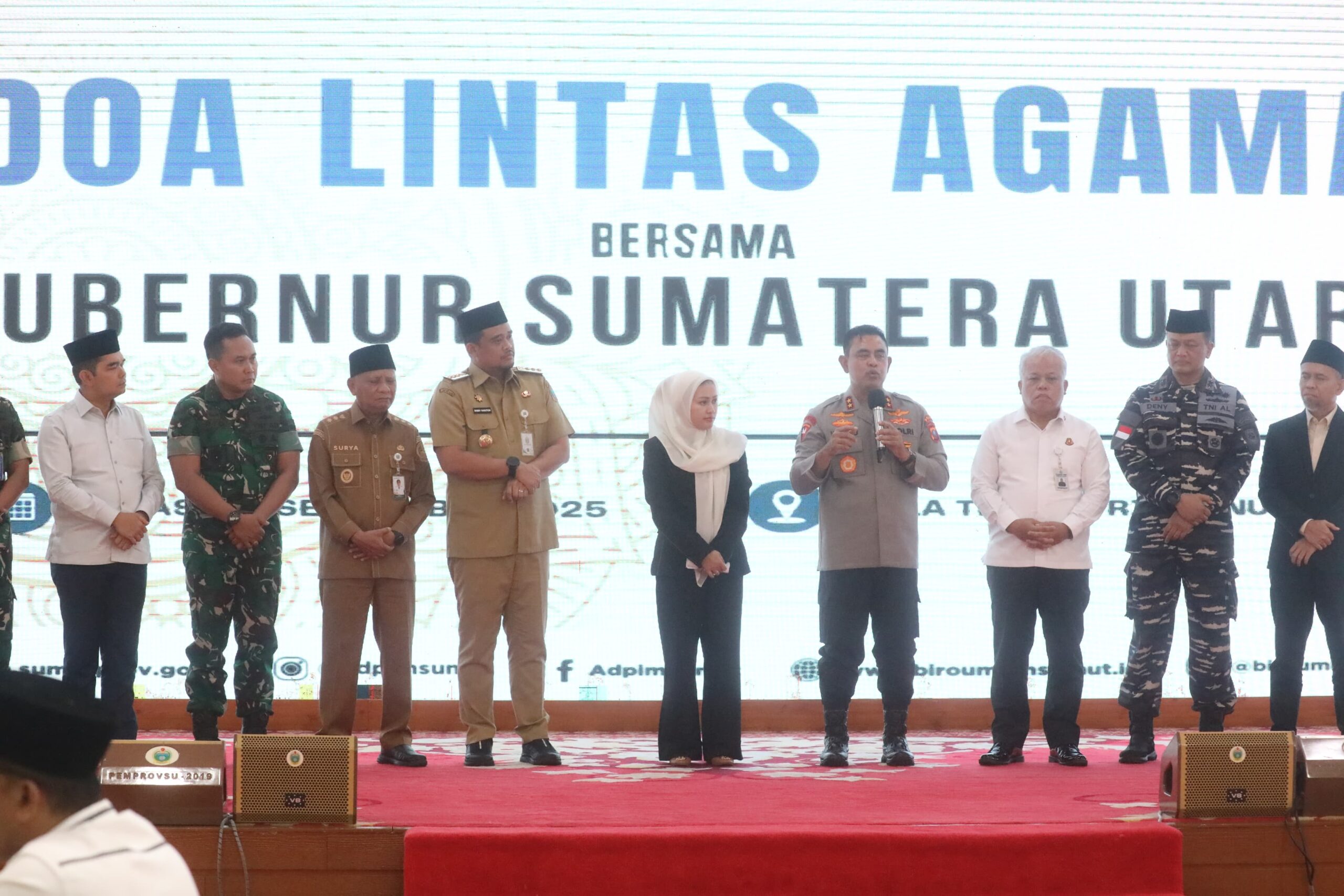 Kapolda Sumatera Utara Irjen Pol Whisnu Hermawan Februanto menegaskan komitmennya untuk terus menjaga keamanan dan ketertiban masyarakat, khususnya dalam momentum Doa Lintas Agama yang digelar bersama Gubernur Sumut Bobby Nasution, Forkopimda, serta elemen masyarakat di Aula Tengku Rizal Nurdin, Selasa (2/8).