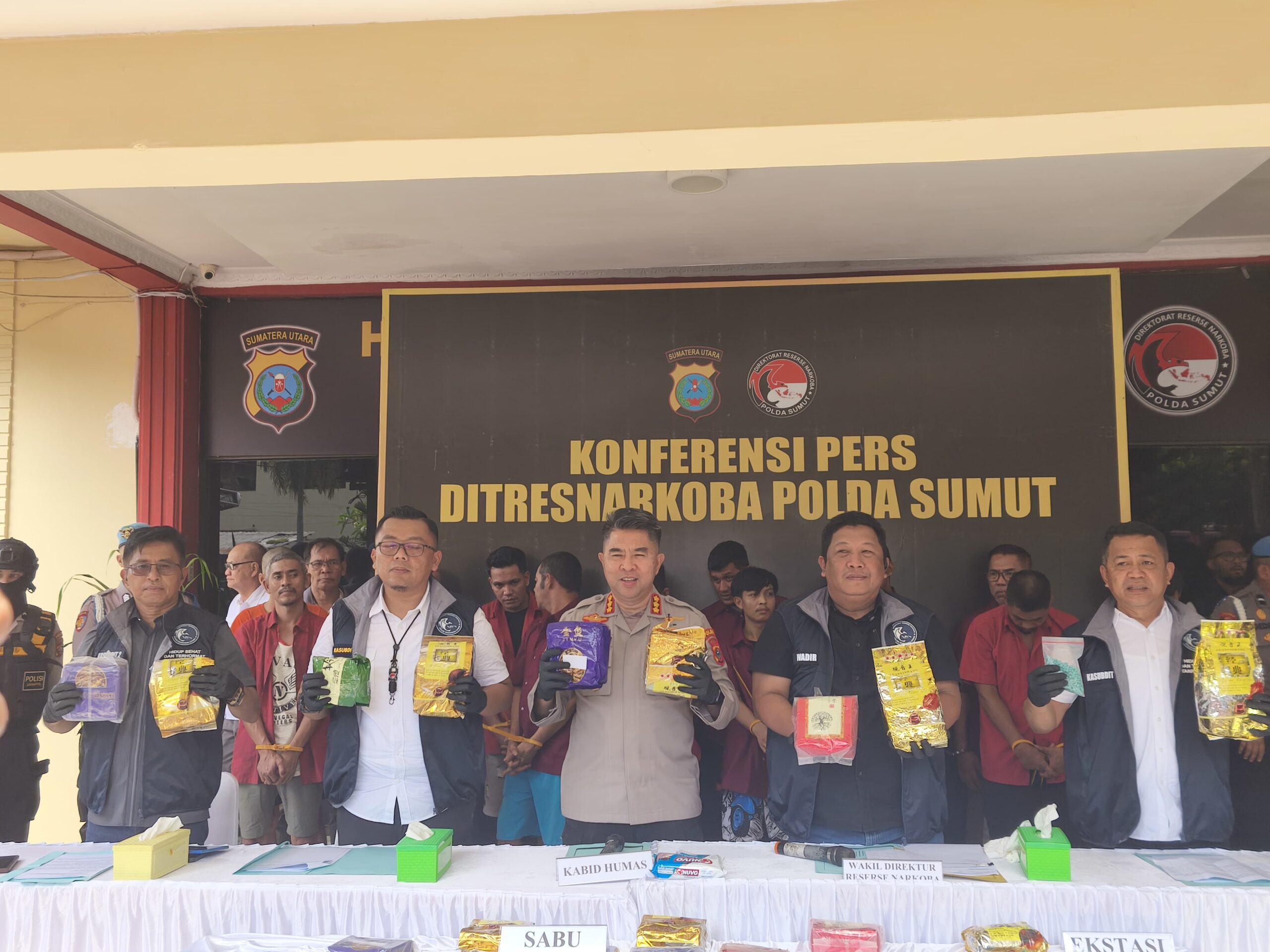 Dalam konferensi pers yang digelar di Direktorat Resnarkoba Polda Sumut pada Kamis siang (11/09/2025), turut hadir Kabid Humas Polda Sumut Kombes Pol Dr. Ferry Walintukan, S.I.K., S.H., M.H., Wadir Resnarkoba AKBP Diari Astetika, S.I.K., serta para Kasubdit Ditresnarkoba.