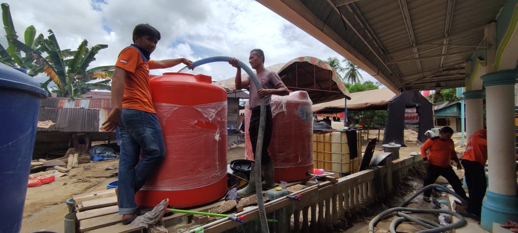 Selain itu personil juga membantu pembuatan sumur bor sedalam 6 meter yang kini telah selesai, koordinasi bersama Kepala Desa dan Dinas PU Provinsi terkait perbaikan delineasi sungai di belakang masjid serta area permukiman, menyiapkan dapur lapangan untuk mengakomodasi kebutuhan konsumsi warga.