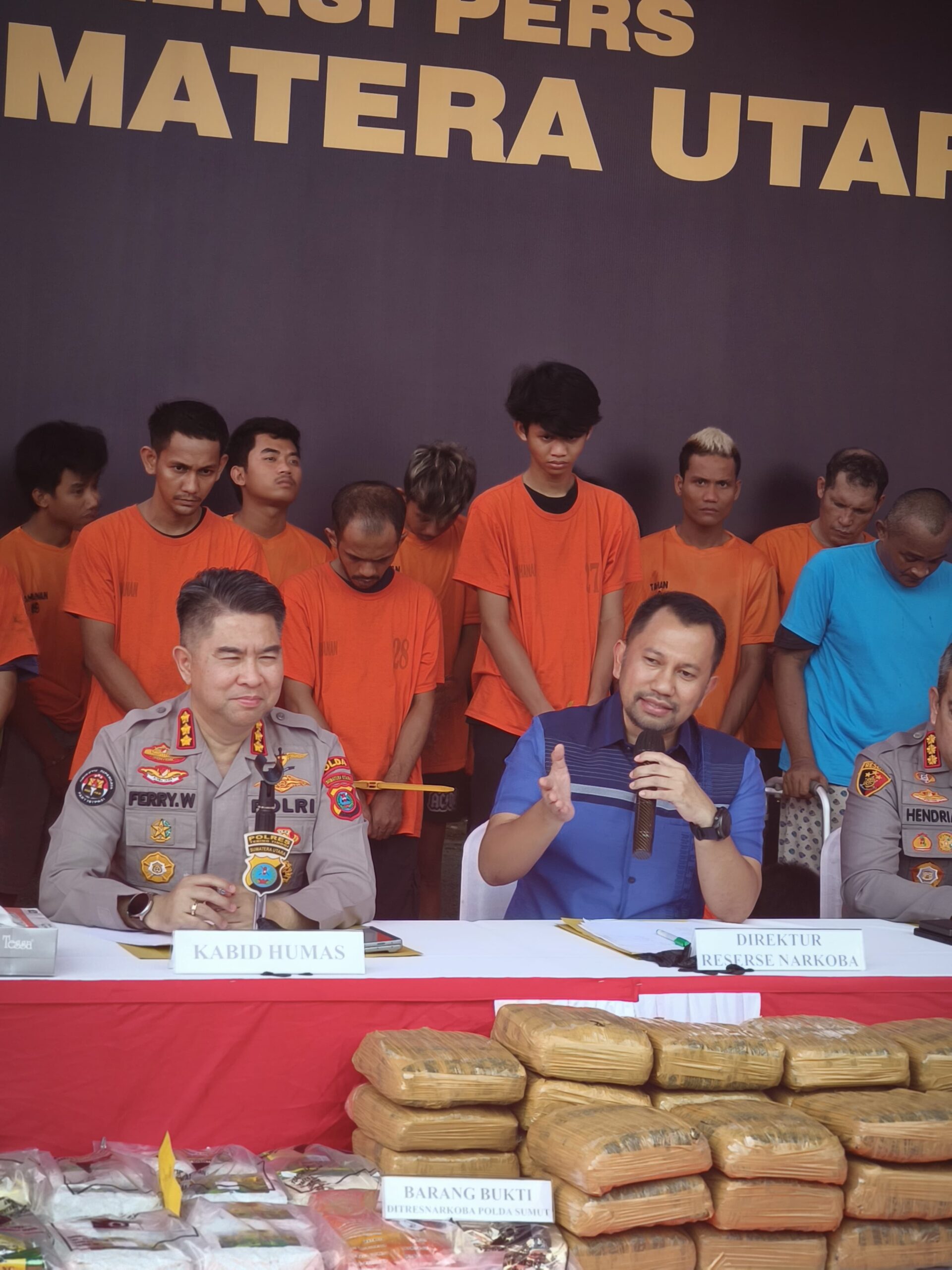 Paparan ini bersama Dirresnarkoba Polda Sumut Kombes Pol Jean Calvijn Simanjuntak, diikuti Kapolresta Deliserdang Kombes Pol Hendria Lesmana, Kapolres Serdangbedagai AKBP Jhon Sitepu, serta Kapolres Tebingtinggi AKBP Simon Paulus Sinulingga.