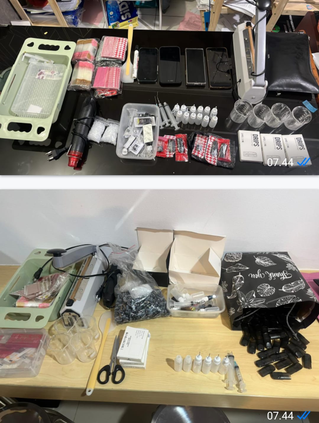 Dalam rangkaian pengungkapan ini, seorang perempuan berinisial C.A. (26) turut diamankan guna kepentingan penyelidikan lebih lanjut. Adapun barang bukti yang disita meliputi ratusan cartridge dan penutupnya, botol plastik, alat ukur, suntikan, mesin pres, alat pemanas, telepon genggam, dua unit kendaraan roda empat, serta berbagai perlengkapan pendukung lainnya.