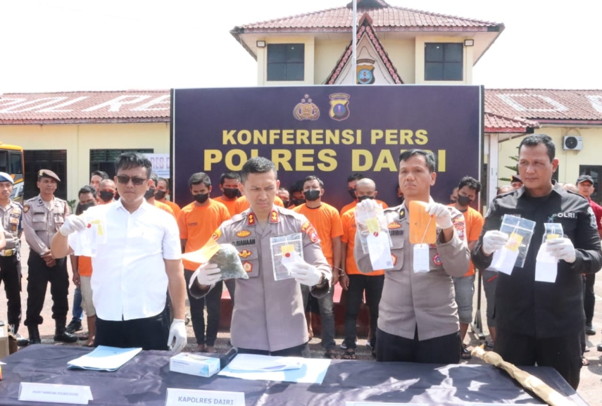 Katanya, dari 43 tersangka, beberapa alat bukti narkoba turut diamankan, dimana salah satunya narkotika jenis sabu dan narkotika jenis Ganja.