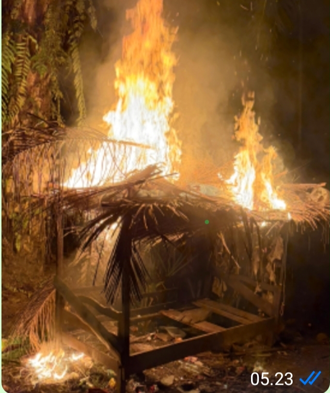 Guna mencegah tempat tersebut kembali digunakan, petugas bersama masyarakat setempat melakukan pembongkaran dan pembakaran terhadap gubuk tersebut.