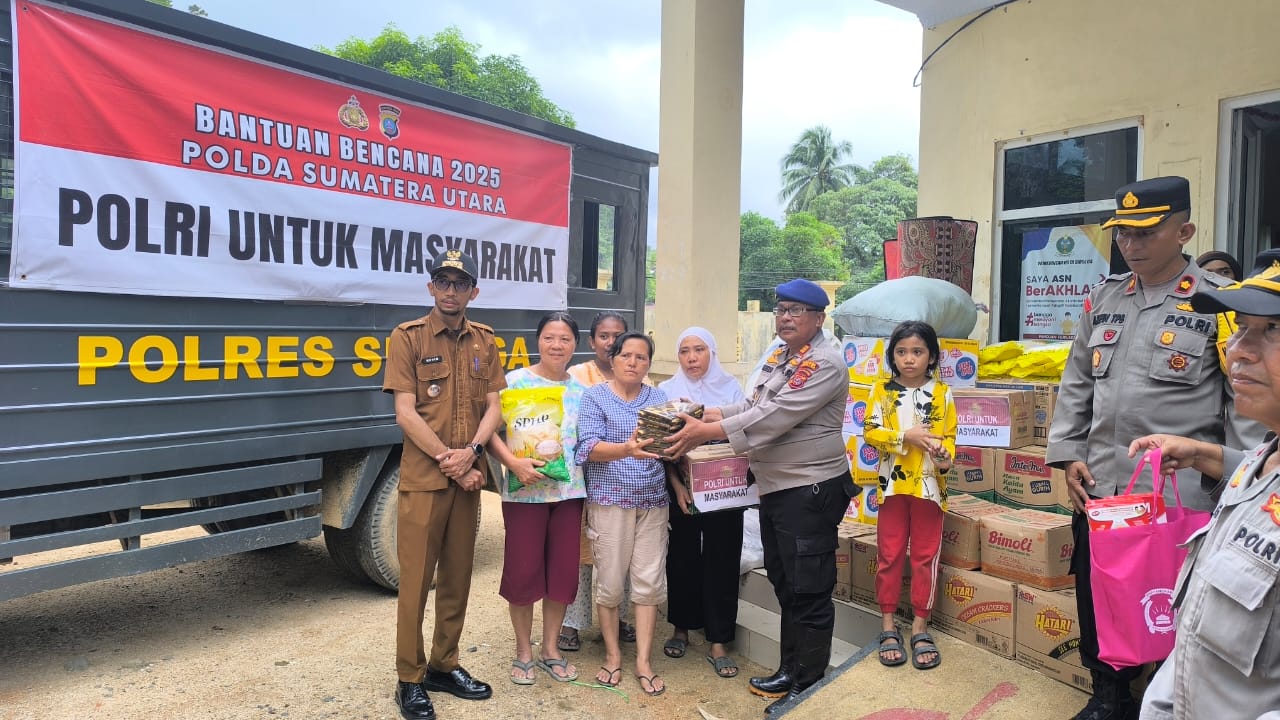 Polres Sibolga melaksanakan pendistribusian Bantuan Sosial (Bansos) kepada masyarakat yang terdampak bencana alam tanah longsor di wilayah Kota Sibolga, pada *Selasa, 09 Desember 2025* sekitar pukul *16.00 WIB hingga selesai*. Bantuan ini merupakan wujud kepedulian dari *Kapolri Jenderal Polisi Drs. Listyo Sigit Prabowo, M.Si dan Ibu Ketua Umum Bhayangkari Ny. Juliati Sigit Prabowo*, serta *Kapolda Sumut Irjen Pol Whisnu Hermawan Februanto, S.I.K., M.H bersama Ibu Ketua Bhayangkari Daerah Sumut Ny. Mona Whisnu*.