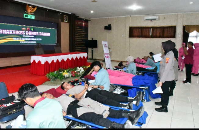 Cirebon – Buser Nusantara Sorot TV – Polresta Cirebon menghelar Bakti Kesehatan Donor Darah Dalam Rangka Hari Bhayangkara ke-79 Tahun 2025, Selasa (17/6/2025). Kegiatan tersebut berlangsung di Aula Pesat Gatra Mapolresta Cirebon.
