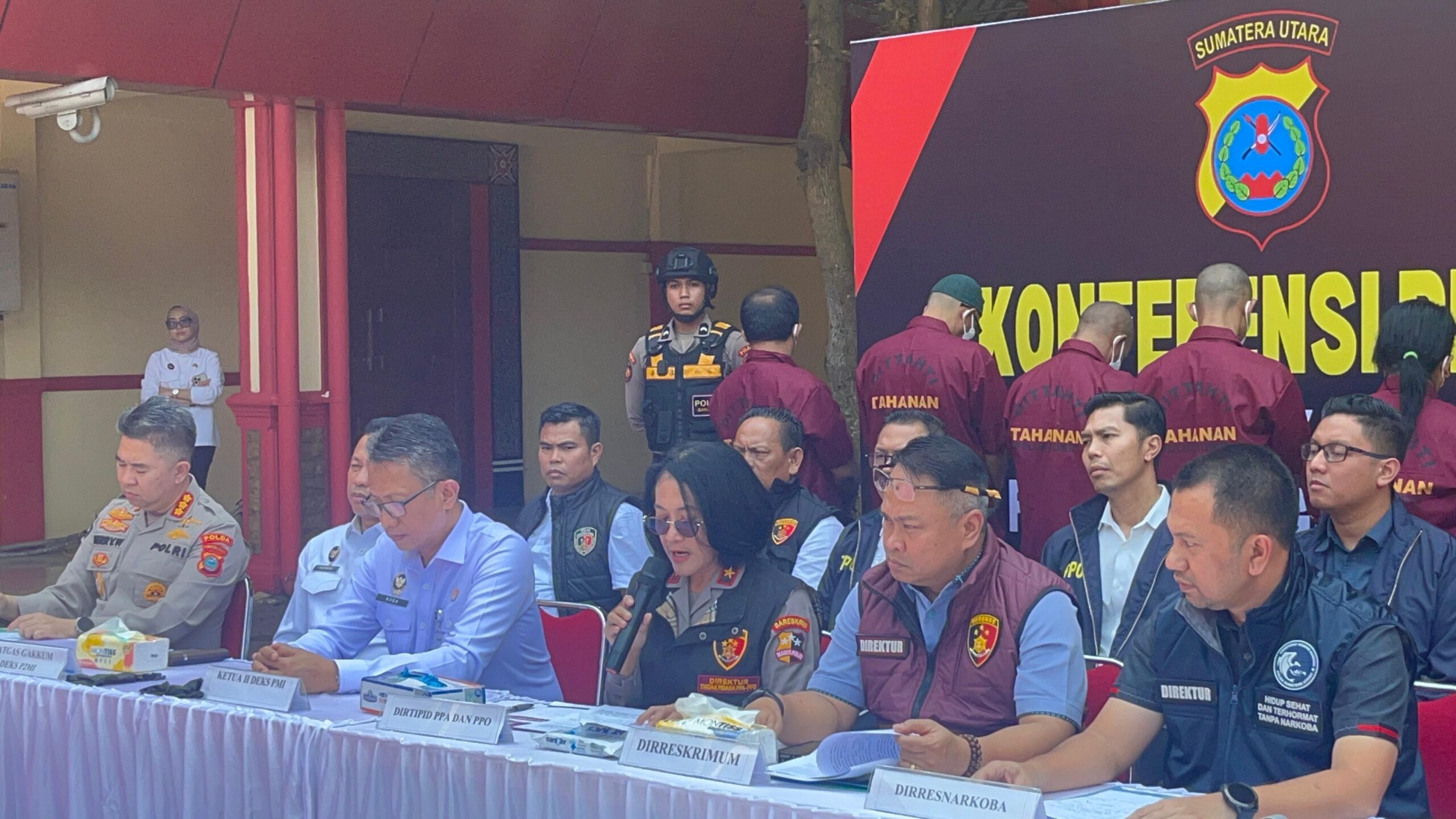 Polda Sumatera Utara bersama Kementerian Koordinator Bidang Politik, Hukum, dan Keamanan RI serta Bareskrim Polri menggelar konferensi pers pengungkapan dua kejahatan serius yang marak terjadi: Tindak Pidana Perdagangan Orang (TPPO) dan peredaran narkoba yang memanfaatkan modus pengiriman Pekerja Migran Indonesia (PMI) ilegal.Kamis(19/6/25)