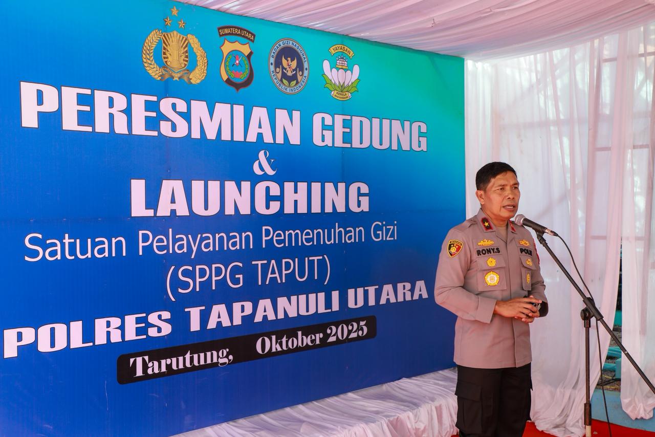 Kepolisian Daerah Sumatera Utara (Polda Sumut) terus menunjukkan komitmennya dalam mendukung program nasional peningkatan kualitas gizi bagi anak bangsa. Hal ini diwujudkan melalui peresmian Satuan Pelayanan Pemenuhan Gizi (SPPG) Polres Tapanuli Utara yang dilaksanakan pada Rabu (29/10/2025), pukul 09.30 WIB, bertempat di Gedung SPPG Polres Taput, Jalan KS. Tubun, Kelurahan Hutatoruan X, Kecamatan Tarutung.