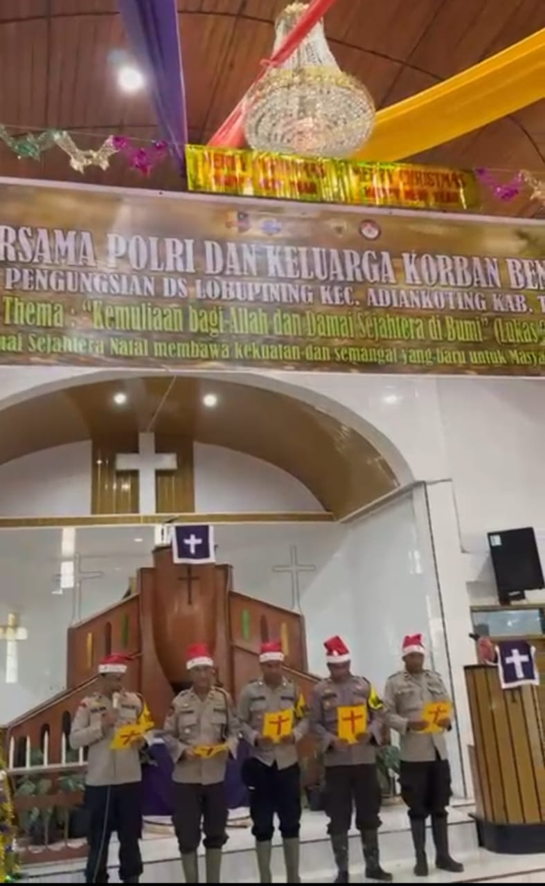 Bertemakan “Kemuliaan bagi Allah dan Damai Sejahtera di Bumi”, dengan subtema “Damai Sejahtera Natal Membawa Kekuatan dan Semangat yang Baru bagi Masyarakat Korban Bencana”, Polri menggelar Natal bersama keluarga korban bencana alam di Kabupaten Tapanuli Utara, Kamis (4/12/2025).