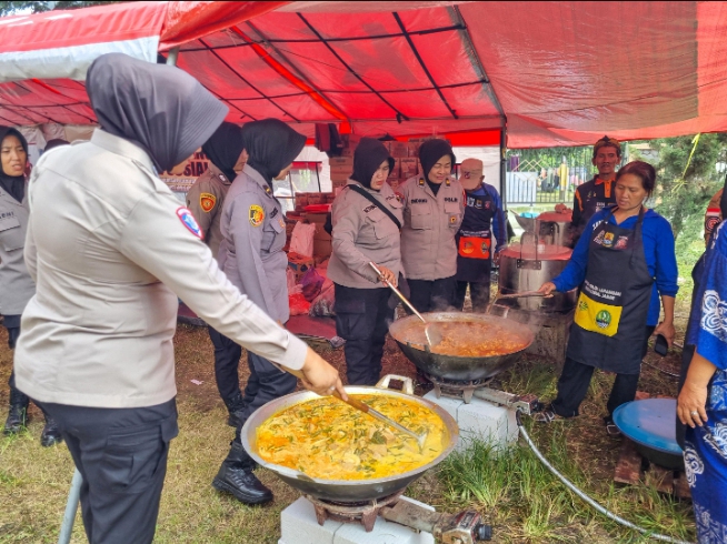 Polwan Polresta Cirebon Kolaborasi Dinas Sosial Siapkan Dapur Umum Untuk Bantu Penanganan Longsor Gunung Kuda