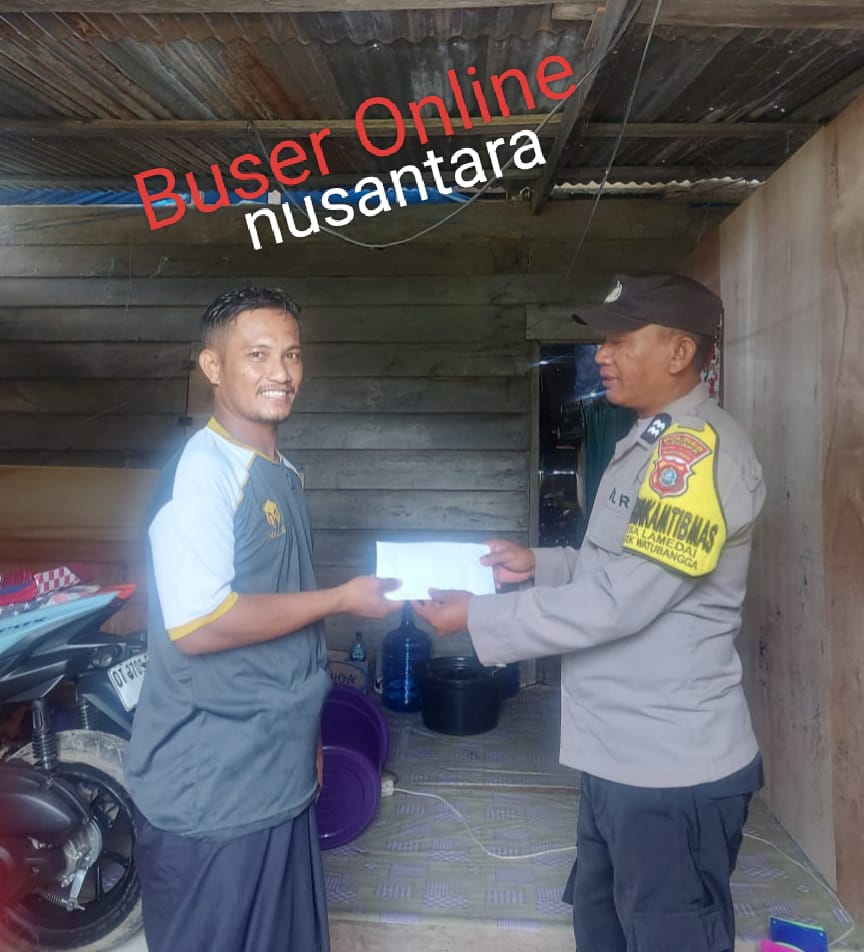 Bengkulu : busernusantarasorottv.com : Kapolsek Watubangga Ipda Hendra SH didampingi Bhabinkamtibmas Aiptu Zamiludin, turun langsung menyampaikan bantuan uang tunai kepada korban tertimpa bencana kebakaran rumah di Desa Lalonggosua Kec.Tanggetada Kab. Kolaka