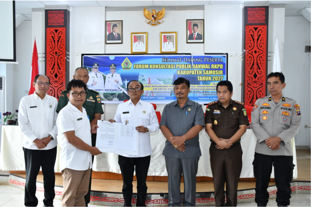 Samosir,busernusantarasorottv.com-Pemerintah Kabupaten Samosir menggelar Forum Konsultasi Publik Rancangan Awal Rencana Kerja Pemerintah Daerah (RKPD) Kabupaten Samosir Tahun 2027 di Aula Kantor Bupati Samosir, Rabu (28/1).