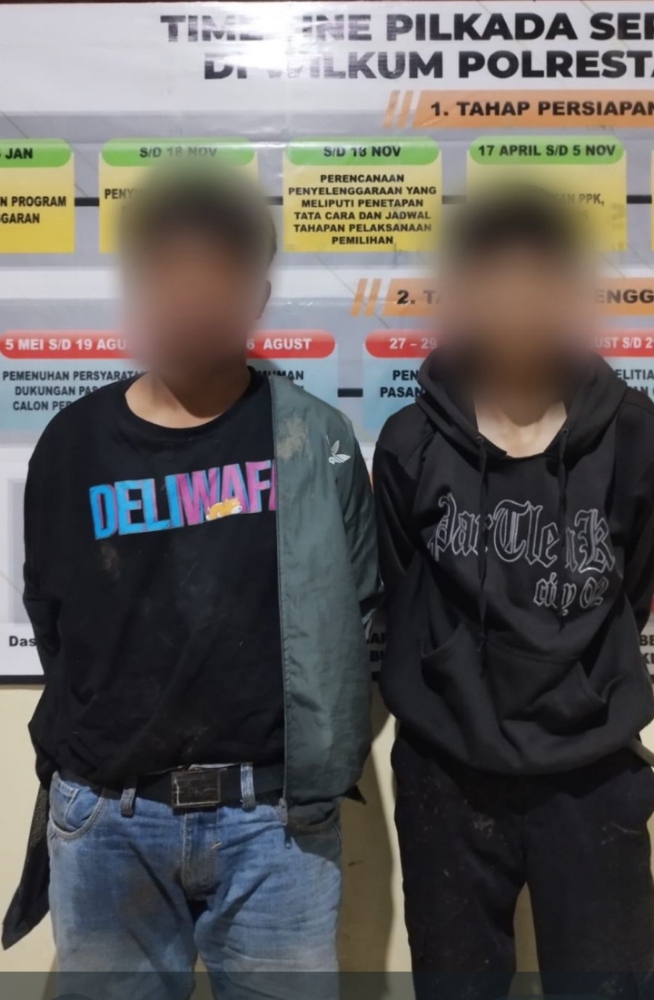 Dua remaja yang diamankan masing-masing berinisial KH (17), pelajar kelas 12 SMK, dan RS (15), pelajar kelas 9 SMP. Keduanya mengaku sebagai anggota kelompok geng motor Misterius Tengah yang berencana melakukan aksi tawuran melawan kelompok geng motor Reperg.19 di bawah Fly Over Pasar Gebang.