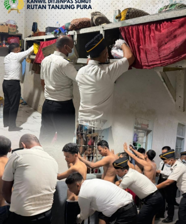 Rumah Tahanan Negara (Rutan) Kelas IIB Tanjung Pura melaksanakan kegiatan Razia Gabungan berupa penggeledahan kamar hunian Warga Binaan secara insidentil dan rahasia. Kegiatan ini dilaksanakan pada Senin (6/4) pukul 20.00 WIB, di blok dan kamar hunian yang ada di dalam lingkungan Rutan Tanjung Pura.Senin (06/04)